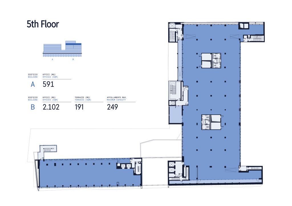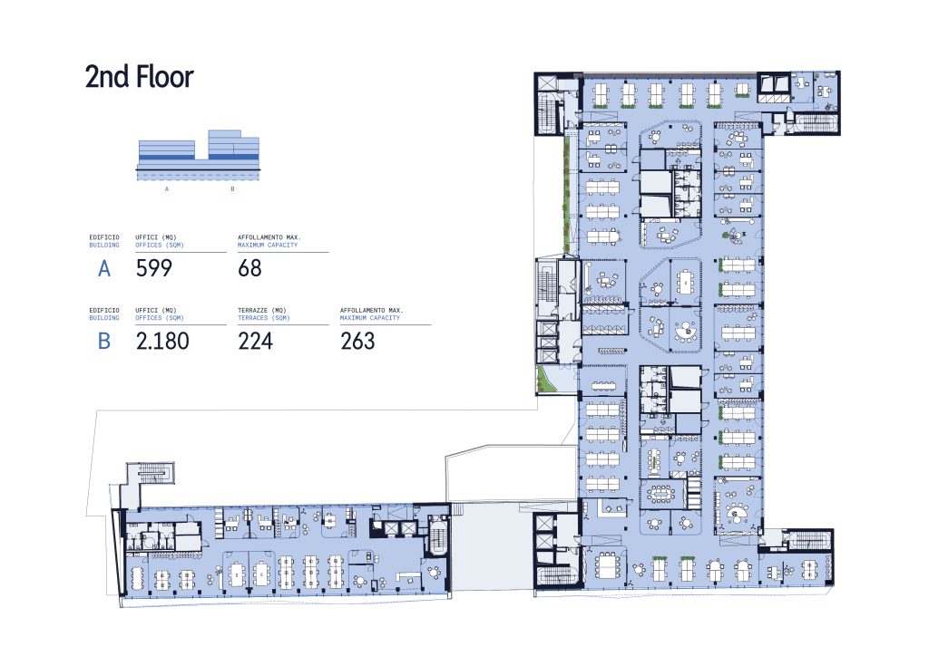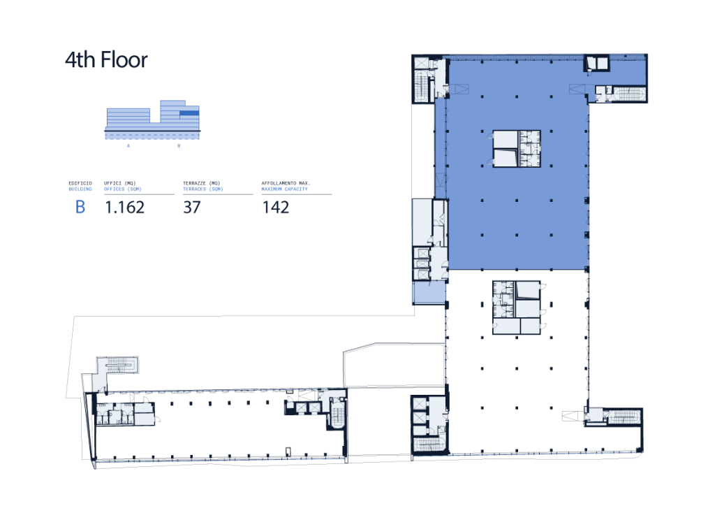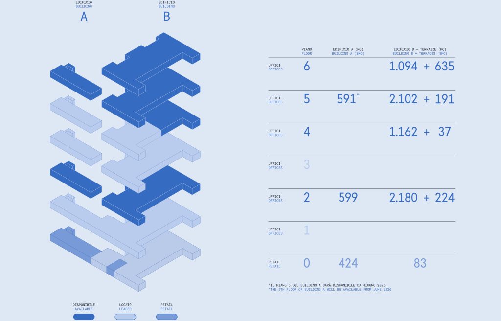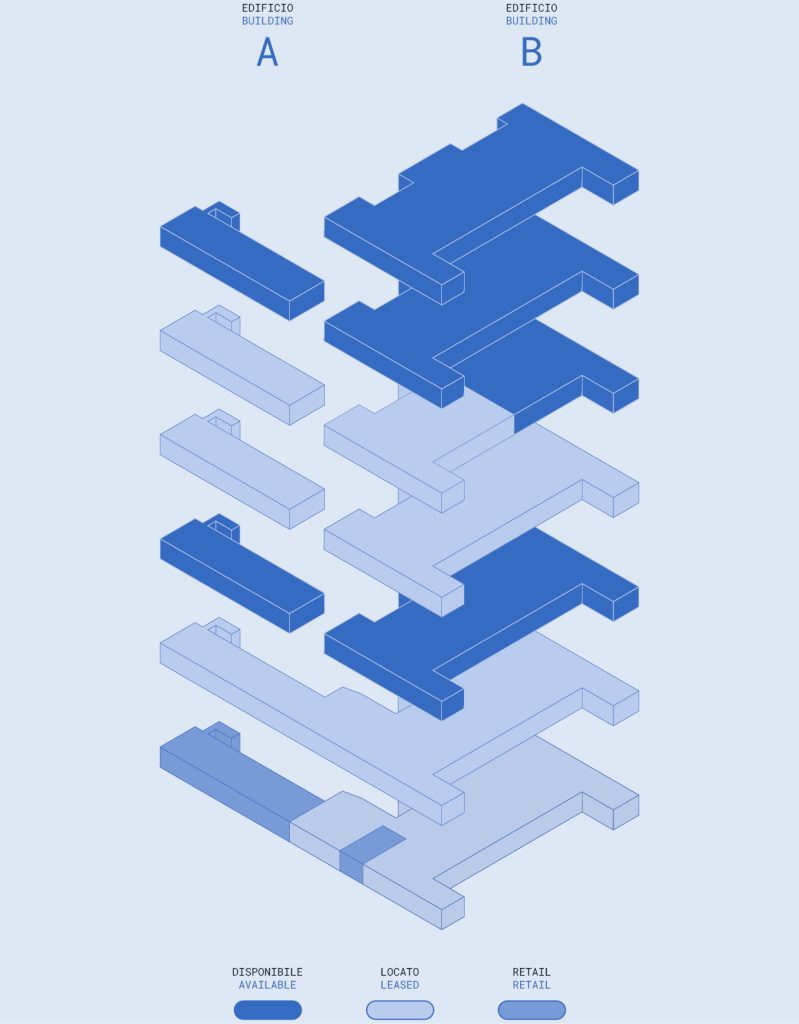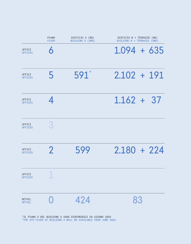 Ogni piano è personalizzabile in base alle esigenze specifiche, con accesso diretto a terrazze e spazi esterni, oltre che a spazi comuni e multitasking. Ambienti progettati per valorizzare la luce naturale, la concentrazione, la connessione e per accogliere il cambiamento.